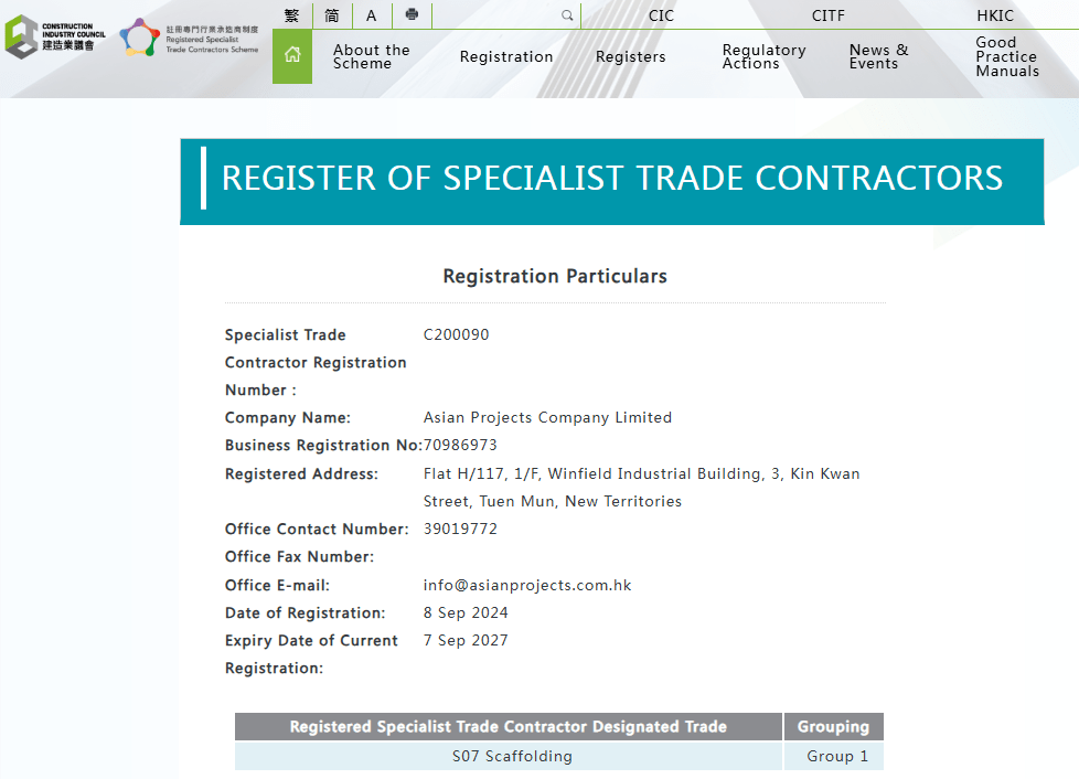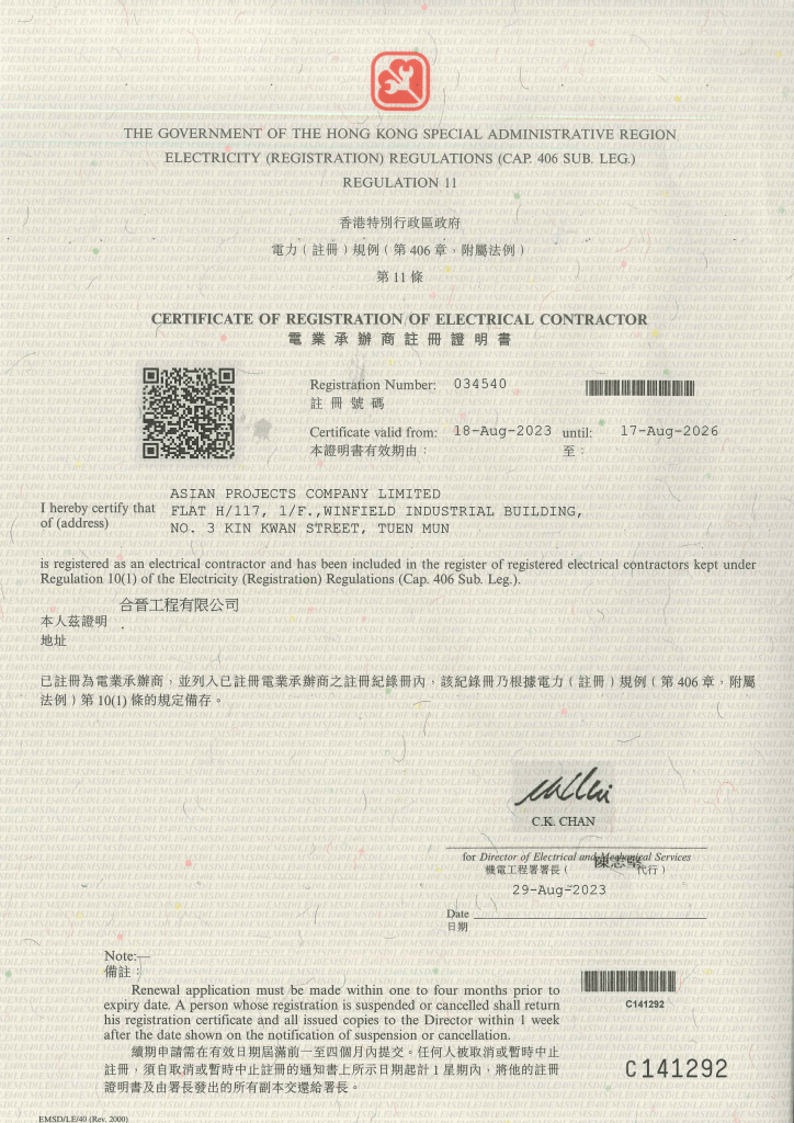 APC has been registered as an electrical contractor and has been included in the register of registered electrical contractors kept under Regulation 10(1) of the Electricity (Registration) Regulations.